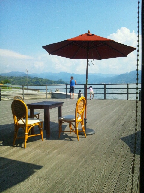 湖の近くで