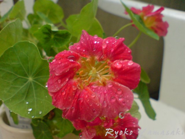 雨に濡れたナスタチウムのお花